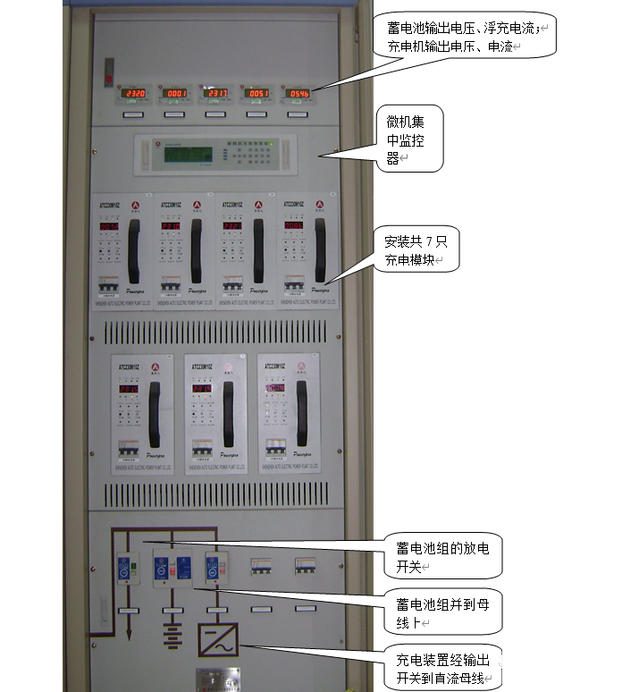 充電裝置與與蓄電池并聯(lián)工作,蓄電池的外特性較平坦,蓄電池的內(nèi)阻比充電裝置小,再通過大電流時,大部分電流由蓄電池承擔,充電裝置在由平時很小的輸出電流突然需要輸出幾十乃至幾百安的大電流時,相當于是個短路過程,一般充電裝置都設(shè)有限流保護裝置。此外蓄電池在交流電源失去,充電機停止工作后,仍能為保護裝置、監(jiān)控系統(tǒng)等最重要的直流負荷提供電源,保證這些設(shè)備的正常工作。