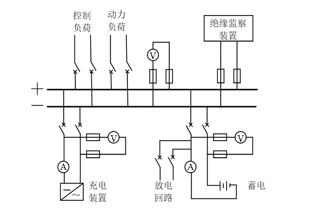 1. 蓄電池、充電機、直流母線、絕緣監(jiān)察裝置、饋出負荷。